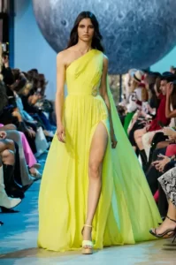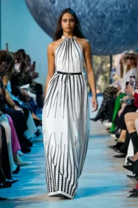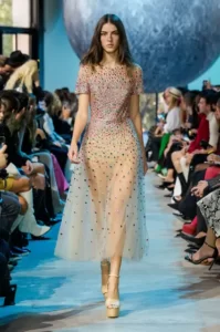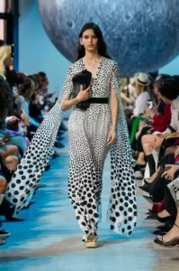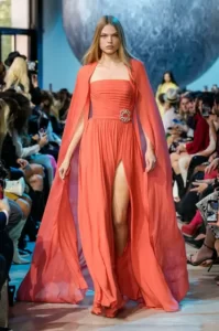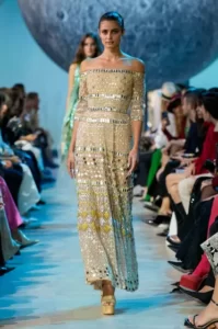 اختار المُصمّم إيلي صعب قصر طوكيو الباريسي لتقديم مجموعته من الأزياء الجاهزة لربيع وصيف 2024، وهو زيّن مسرح العرض بقمر ضخم كما تزيّنت بعض التصاميم بزخارف وطبعات تستحضر هذا الكوكب الفضي بمُختلف مراحله. حملت المجموعة عنوان Moonlight Shadow أو “ظلّ ضوء القمر”، وهي تضمّنت أكثر من 60 إطلالة ملوّنة وحيويّة تُعزّز تألق كل امرأة ترتديها وتجعلها تفيض إشراقاً مثل ضوء القمر.