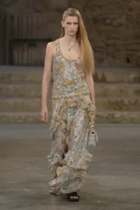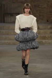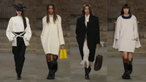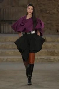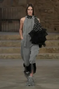 وصف جيسكيار هذه المجموعة بكونها رسمية وبعيدة عن الطابع “الكاجوال”، لكنها تتضمن تصاميم تغلب عليها المرونة وتتزين بطبقات القماش. تضمنت المجموعة أيضاً عناصر لافتة منها أحذية لامعة مستوحاة من عالم ركوب الخيل، بالإضافة إلى تفاصيل تستحضر الكشاكش ونقاط البولكا التي تزين أزياء الفلامنكو لكن بأسلوب مميز وغير مباشر.
