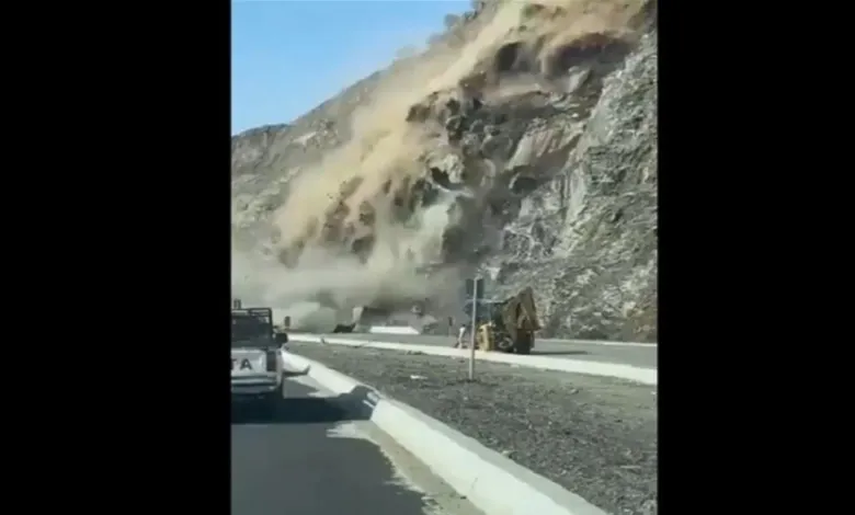 وثق مقطع فيديو متداول، انهيارًا صخريًا كبيرًا بوادي عسلان على طريق محايل بحر أبو سكينة بمنطقة عسير جنوب غربي السعودية.