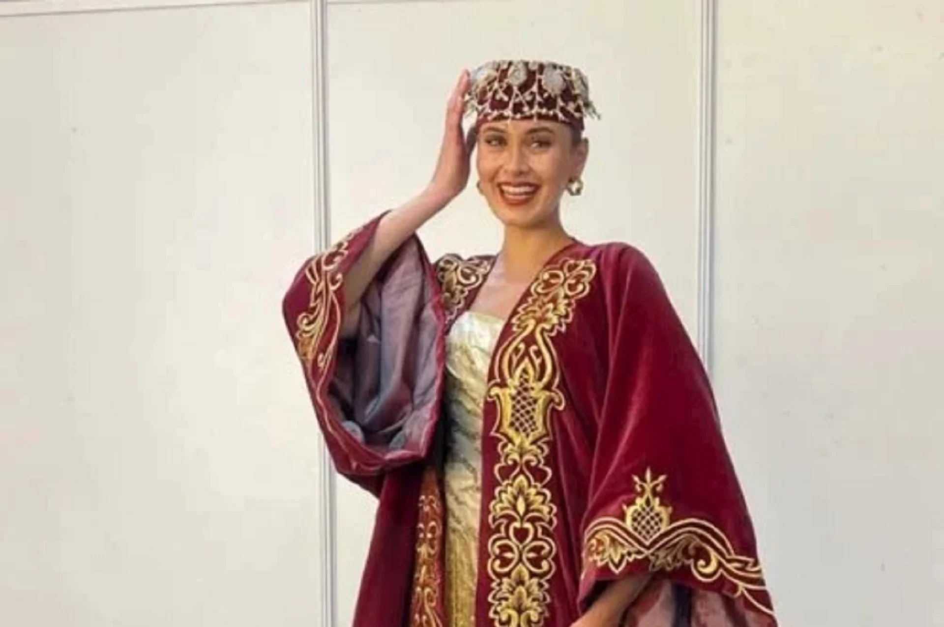 اختارت ملكة جمال لبنان ندى كوسا قفطانا لونه نبيتي، وأطرافه مزينة بالنقوش الذهبية وكذلك أجزاء منه، واعتمدت ندى كوسا في مكياجها على درجات النيود الهادئة التي أبرزت ملامحها الطبيعية، وصففت شعرها على هيئة كعكة وارتدت فوقها قبعة مطابقة للقفطان.