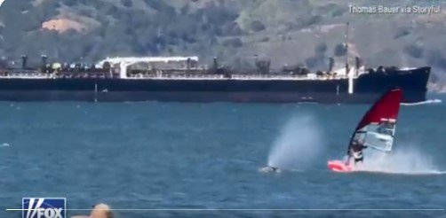 وثق فيديو انتشر على وسائل التواصل الاجتماعي لحظة اصطدام متزلج شراعي بحوت في خليج سان فرانسيسكو.