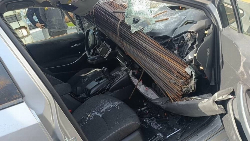 القضبان اخترقت الزجاج الأمامي ودخلت إلى المقصورة، ما وضع السائق والراكب في خطر بالغ، إلا أن العناية الإلهية حالت دون وقوع إصابات خطيرة، واقتصرت الأضرار على إصابات طفيفة.