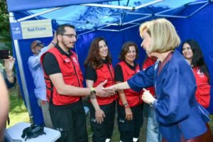 وفي ختام الافتتاح، جالت اللبنانية الأولى على أجنحة المنتدى كافة، مطلعة على أبرز المشاريع والمبادرات الطلابية المشاركة فيه. وتفاعلت مباشرةً مع المنظمات والمؤسسات ومع الطلاب، مستمعةً إلى تجاربهم ومداخلاتهم، ومشجّعةً مبادراتهم التي تعكس حسًّا عاليًا بالمسؤولية والانتماء، ومؤكدةً أهمية دورهم كشركاء فاعلين في بناء المجتمع.